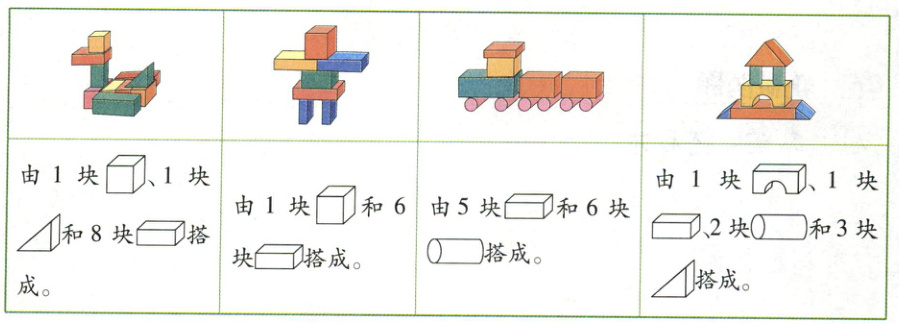 例 2 (教材第 5 页)你还想搭出什么? 先想一想,再搭一搭。