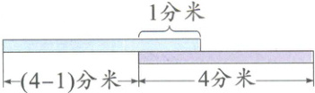 例2 把两块长4分米的木板拼成一块长木板,中间钉在一起的重叠部分长1分米。钉成的长木板长多少分米?