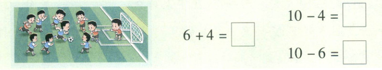 思路点拨:从图中可以看出,蓝队有6个小朋友,红队有4个小朋友,把他们的人数合在一起,就得到总人数,用加法计算,列式为6 + 4。