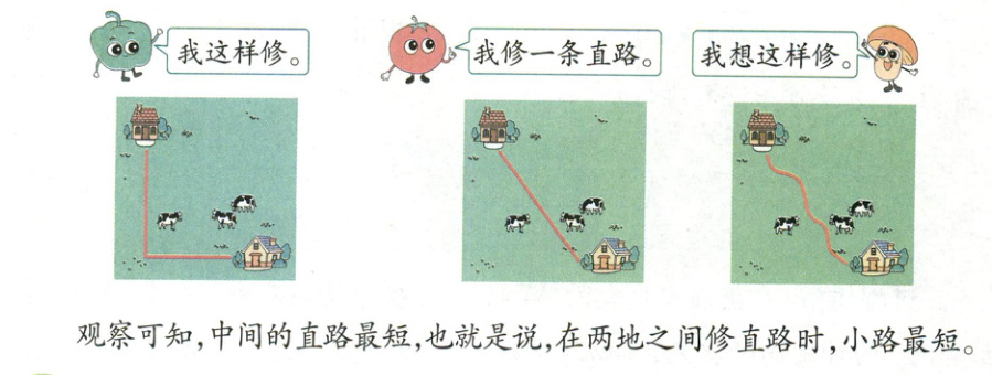 例 3(教材第 8 页)在草地上修一条小路,把两座小房子连起来,可以怎样修?