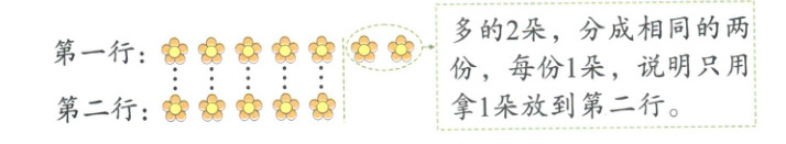 例1 第一行有7朵花,第二行有5朵花,要使两行花同样多,应从第一行拿( )朵花放到第二行。
