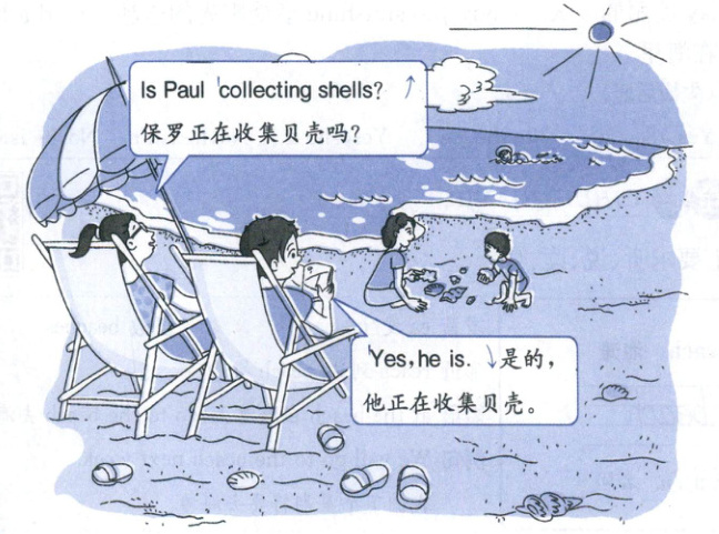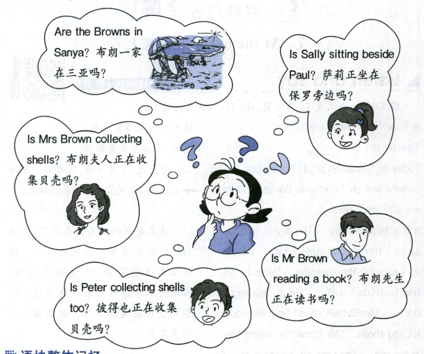 这是美丽的一天。天很蓝,云很白。萨莉正在享受阳光的乐趣。彼得正坐在萨莉旁边。他正在读书。布朗夫人和保罗正在收集贝壳。布朗先生正在海里游泳。他们都玩儿得很高兴。