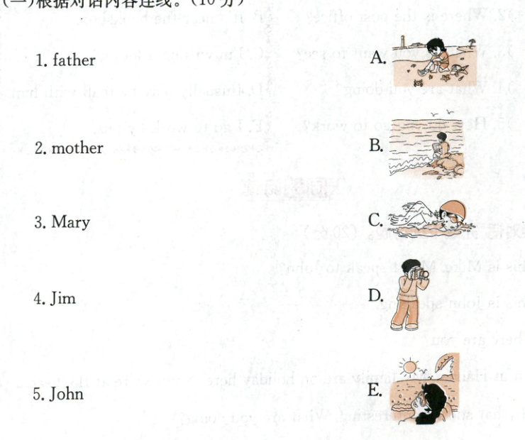 (一)根据对话内容连线。(10 分)