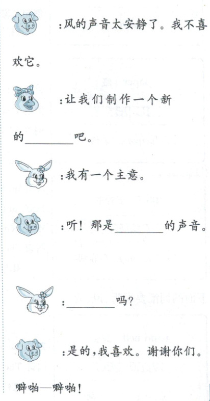 听风的声音。于是,他制作了一个纸风铃。风正在和缓地吹。LittlePig不喜欢他