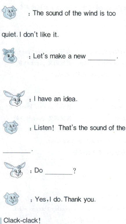 LittleDuck和LittleRabbit都有风铃。她们都喜欢风的声音。LittlePig也想