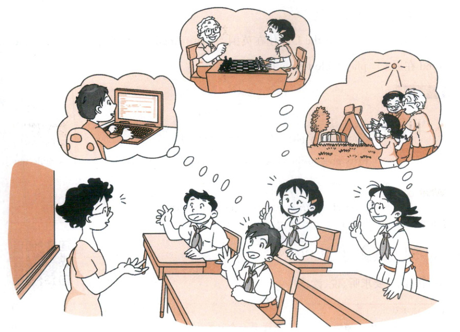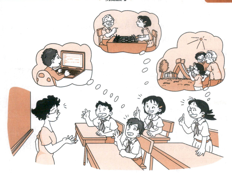 情景描述 Ms Guo 询问大家与他们(外)祖父母一起做什么事。