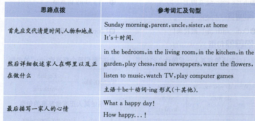 本模块主要介绍家人、朋友正在进行的日常活动。请以“A Happy Day”为题写一篇短文,介绍一下你和家人周日正在做的事情。