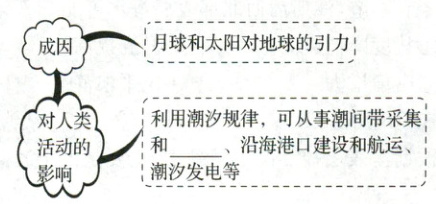 、沿海港口建设和航运、潮汐发电等[点拨]潮汐发电