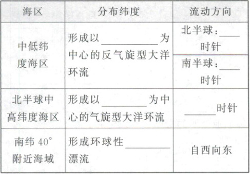 南半球中纬度40°~60°海域,形成以南极 为中心,呈顺时针方向环绕南极大陆的西风漂流,性质为寒流。