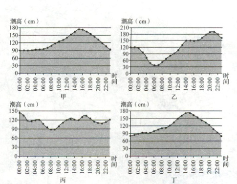 (2024·河北联考)图甲、乙、丙、丁分别示意秦皇岛鸽子窝海滨2023年夏季某月四个日期的潮汐。完成3、4题。