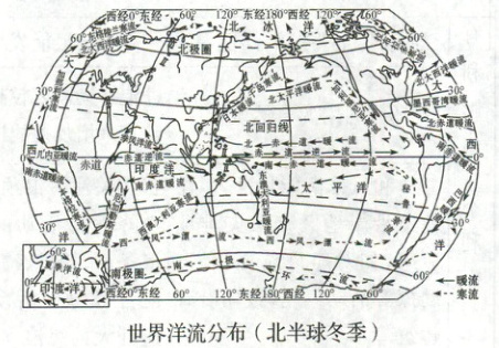 世界洋流分布(北半球冬季)