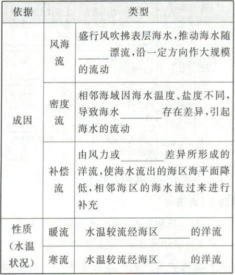 风 密度 密度 高 低 [思考] 不一定。同一纬度的海区,暖流水温比寒流水温高;但在不同纬度的海区,暖流的水温不一定比寒流高,低纬的寒流水温可能比高纬的暖流水温高。