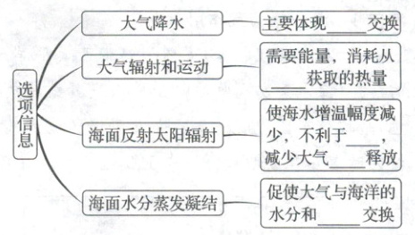 (2024·浙江 1 月选考)海—气间通过潜热(海水蒸发吸收的热量或水汽凝结释放的热量)、长波辐射等方式进行热量交换,并通过大气环流和大洋环流调节不同纬度间的水热状况。下图为北半球夏季大气潜热释放对局地气温变化的贡献。完成(1)(2)题。