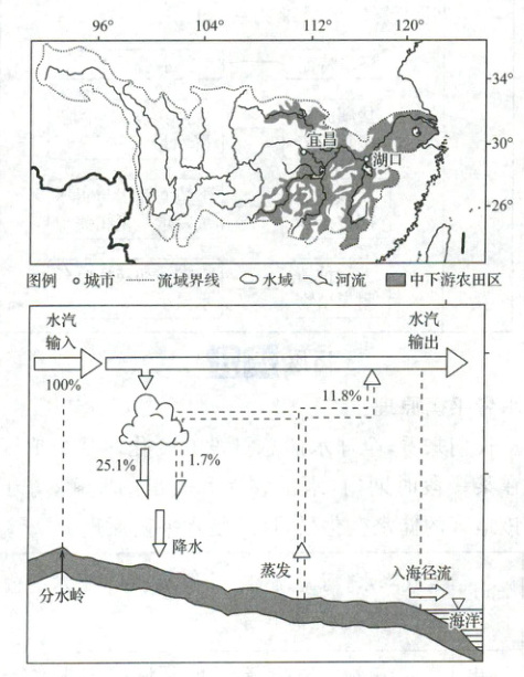 材料二 下图为长江流域水循环简图及长江流域示意图。