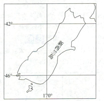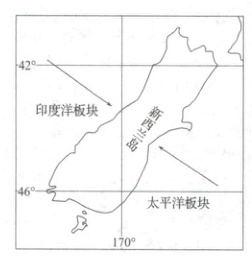 在下图中写出新西兰岛东西两侧的板块名称,并用箭头画出板块运动方向。