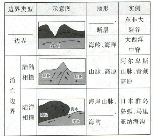 1. 板块运动与地貌: