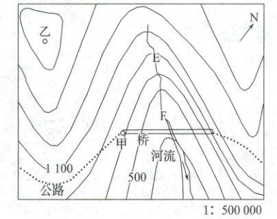 (2)① -240-等高线/m 作图技巧:根据山区公路的选线原则可知,A、B两点之间的公路应建在地势起伏较小的山间盆地和河谷地带。② 1:500000 山区公路尽量沿等高线修建,地势落差小,工程量小,工程造价低。