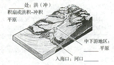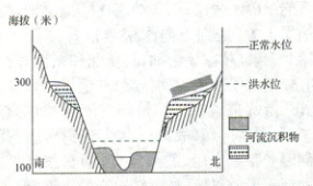 (2)在我国北方某河谷剖面示意图中用绘出聚落的最适合分布区,并简述理由。