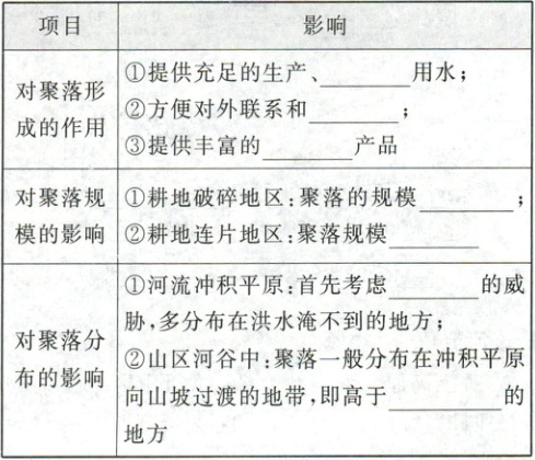 [回归教材]读选择性必修 1 教材 P37 图 2.36“河流地貌对聚落分布的影响”,完成下列问题。