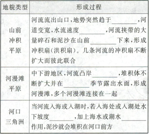 平缓 减慢 堆积 堆积 枯水 平缓 顶托