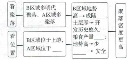 (2)分析与 A 区域相比,B 区域聚落密度大的原因。(6 分)
