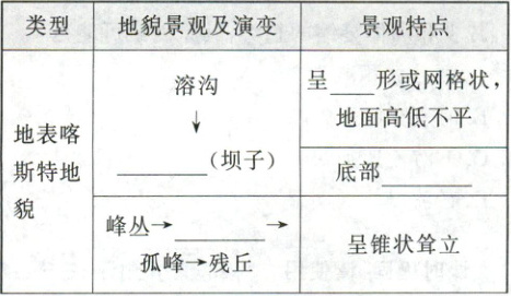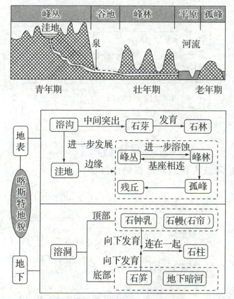 [回归教材]读必修第一册教材 P67 图 4.2“地表喀斯特地貌景观演变示意”,结合下图,完成下列要求。