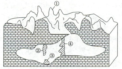 ,从而在地表和地下形成形态各异的地貌,统称为喀斯特地貌。(2) 认识类型:指出图中序号所示的喀斯特地貌类型。