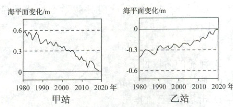 (2)根据地理位置,分析甲站陆面垂直变化的原因。(6 分)