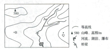 2.桥梁附近河岸与Q点的高差最接近 (