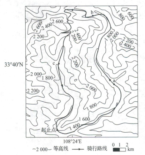 (2024·秦皇岛模拟)下图为6月底举行的某山地自行车越野赛赛区及周边等高线地形图。据此完成3、4题。