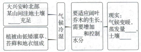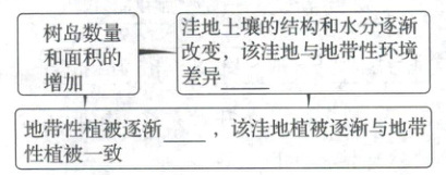 (2024·广西选择考)大兴安岭北部某山间洼地土壤水分充足、氮素匮乏,植被由低矮灌草、苔藓和地衣组成。近 30 年来,某种具有固氮功能的阔叶乔木侵入该地并逐渐占据优势,影响当地植被物种组成和垂直结构。该种乔木生长区域在空间上零散分布,被称为“树岛”。据此完成(1)~(3)题。