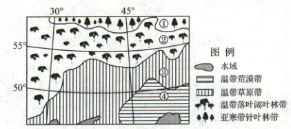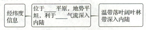 (2)图中温带落叶阔叶林带的分布深入内陆,其影响因素是(