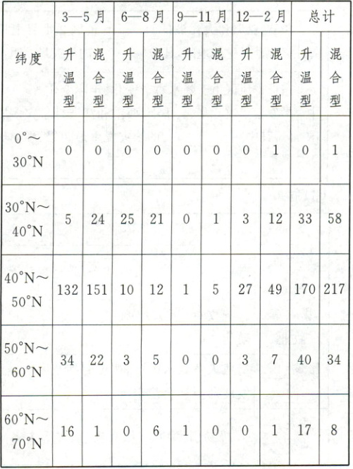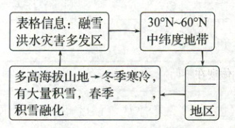 (2023·湖南选择考)融雪洪水灾害由大量的积雪快速融化引起,可分为雨雪混合型(简称“混合型”)洪水灾害和升温融雪型(简称“升温型”)洪水灾害,融雪洪水中常夹杂着冰凌和融冰。下表示意 1900—2020 年北半球融雪洪水灾害频次。据此完成(1)~(3)题。