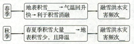 (2)春季与秋季融雪洪水灾害频次差异大,主要是因为(