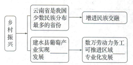 (2024·广西选择考)实施乡村振兴战略以来,云南省红河哈尼族彝族自治州建水县葡萄产业实现规模化发展。葡萄的种植、修剪、疏果、采摘、包装等生产环节用工需求大,吸引了邻近的五个传统农业县数万劳动力前来务工。据此完成(1)(2)题。
