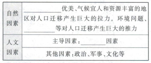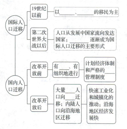 (3) 分类:按照是否跨越国界分为______人口迁移和______人口迁移。