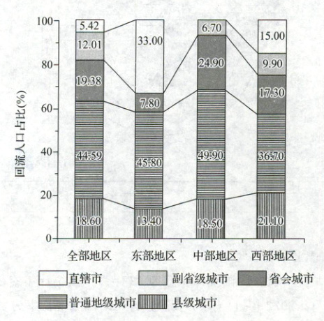 D. 中部地区普通地级城市的区域性人口回流占比最高