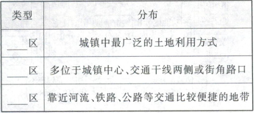 1. 城镇内部空间结构的主要类型: