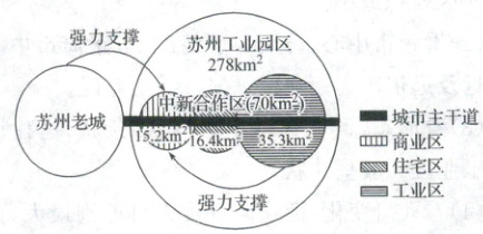 (3)从苏州老城主干道向东延伸串联中新合作区各功能区,体现的布局思路是( )
