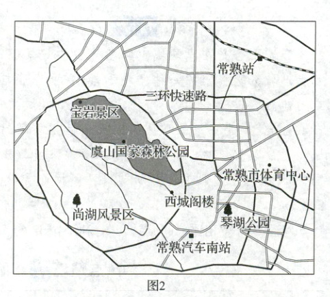 (2) 高铁站点一般都选在城外的一定距离,常熟站则选址在城市三环快速路外 2 千米处,分析其选址的利弊。(8 分)
