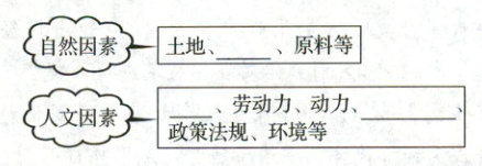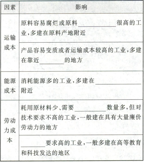 (1)运输成本 市场 能源供应地 劳动力 技术 [思考]降低成本,提高经济效益。