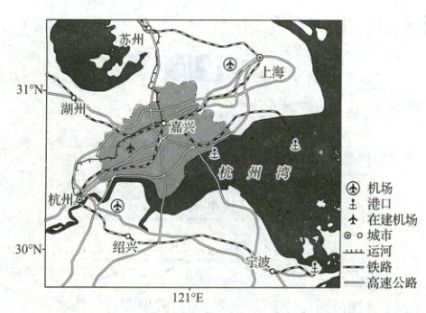 (2023·湖北选择考)浙江嘉兴水果市场创办于1992年,21世纪初随着上海部分水果批发市场的迁入,规模不断壮大,目前已成为长三角地区交易规模最大的果品集散中心。近年来,嘉兴积极拓展进口水果市场,打造世界水果交易中心。如图示意嘉兴交通运输布局。据此完成1~3题。