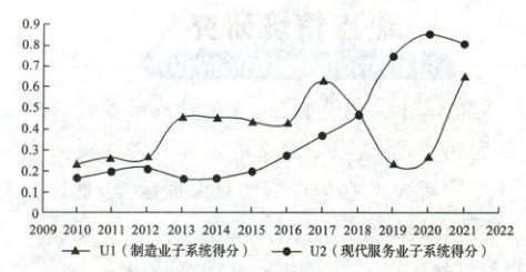 1. 图中信息表明苏州制造业子系统和现代服务业子系统 (