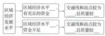 (1)区域经济发展水平影响交通线、站点的密度和质量。