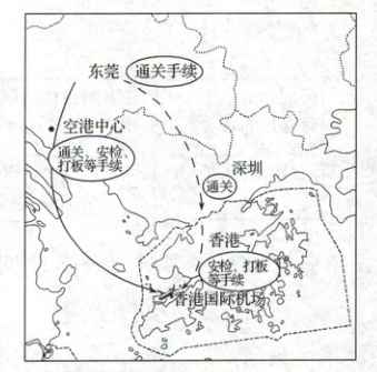 位于东莞港的“东莞—香港国际机场物流园”(又称空港中心)是全球首个直达机场的跨关境海空联运项目。该项目首创跨境安检前置,内地出口货物可在空港中心完成通关、安检和打板等全部登机手续,经专用船舶海运抵达香港机场码头,直接装上飞机发往全球。下图示意传统运作模式与空港中心运作模式。完成 4、5 题。