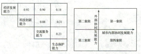 4. 如右上图,使用内部和外部协同发展能力所建立的坐标轴,可将不同协同能力的城市分为四个类型,即对应四个象限,那么应该属于第四象限的长江经济带城市为( )