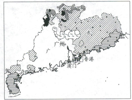 (1)描述广东省方言区分布的主要特点。(4分)