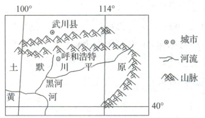 (2024·眉山模拟)内蒙古自治区武川县关闭部分露天煤矿,着力打造清洁能源产业——风电开发。同时,该县引进光伏发电,形成“风光互补、蓄储一体”的清洁能源体系,为呼和浩特市打造“中国新能源之都”提供支持。读武川县位置图,据此完成 6、7 题。