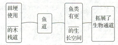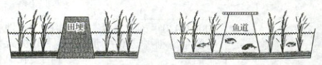 (2023·浙江6月选考)某城市公园引入稻鱼生态系统,将原来分割稻田的田埂用架空的木栈道修建成鱼道,取得了良好效益。下图为改造前后田埂和鱼道的示意图。完成(1)(2)题。