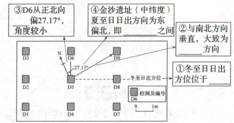 (2)已知 3000 年前的黄赤交角比现今大,与现在遗址地居民相比,则当时金沙先民在(